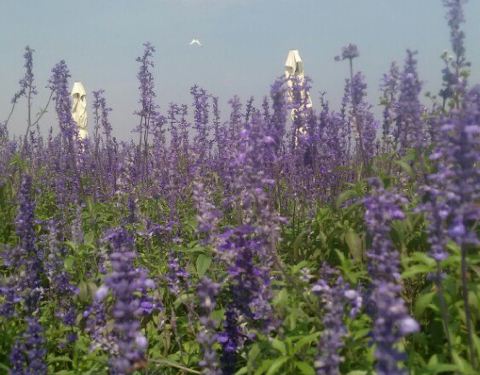 十月三日去的,很清静,游人不多。季节不对,只有淀山湖边上一点蓝紫色的鼠尾草和橙色的波斯菊可以看了