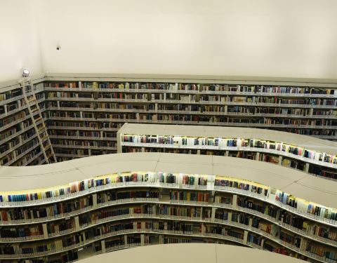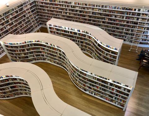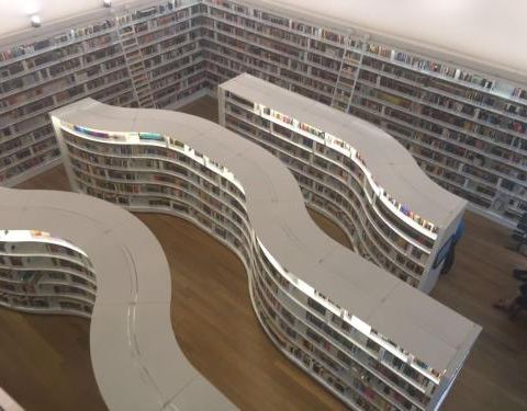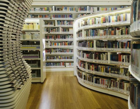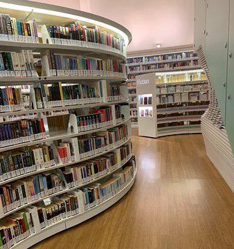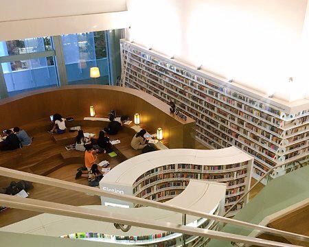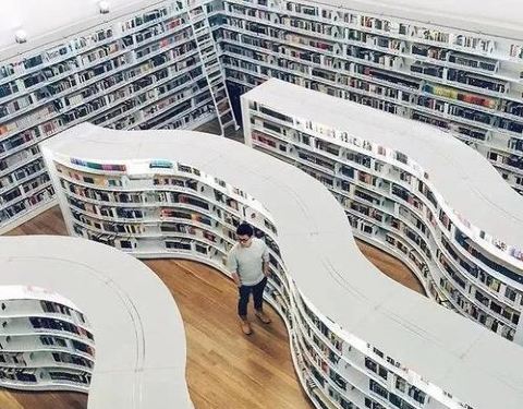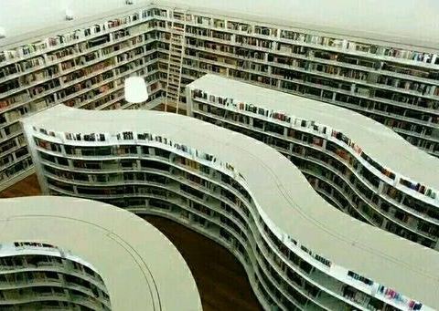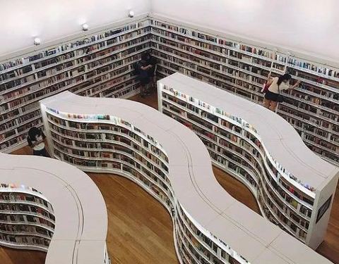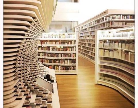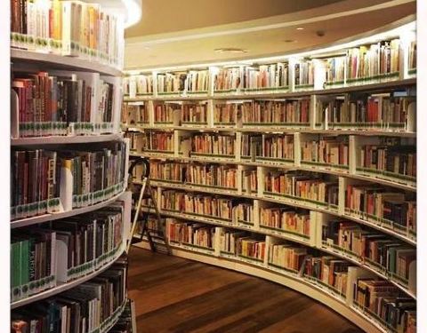 这是新加坡乌节路上的一家非常有创意的图书馆,也被称为新加坡最美图书馆。整个图书馆的书架采用的是波浪形的书架,从二层观看非常的壮观。图书馆内收藏这许多各个方面的图书 绝对是一处知识的海洋,吸引着许多读者前来阅读。