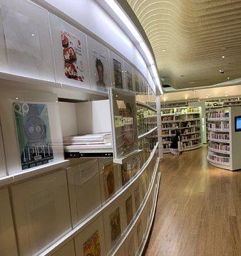 新加坡有很多单独图书馆。但这是位于购物中心上方的。当您进入图书馆时,您会发现它是现代,光线充足,温暖和时尚设计的。它有广泛的设计和生活方式收集,分为4主题 - 人文,空间,产品和设计。在每个主题领域,您可以找到书籍,杂志,视听格式分组在一起。如果您需要帮助,在各地方有自助信息亭。虽然它是对公民和长期居民开放,但游客不能在这里借书。
