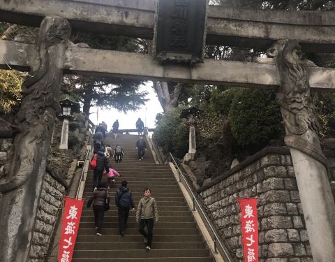 品川神社在号称小富士山的富士塚那里,这里台阶和登富士山是同样的,同时神社也是东海七福神巡游的起点,也有新年御朱印彩纸购买,不喜欢爬长阶梯的人,推荐走右边的坡道,神社后面还有板垣退助的墓。