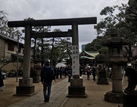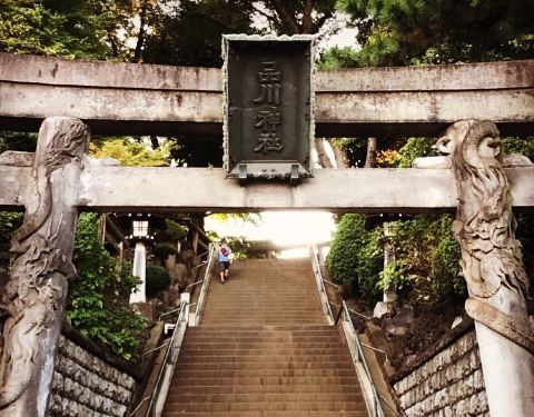 品川神社,东海七福神神社之一,门口盘龙的石造大鸟居是其特色。每年6月有固定的社大祭,非常隆重。