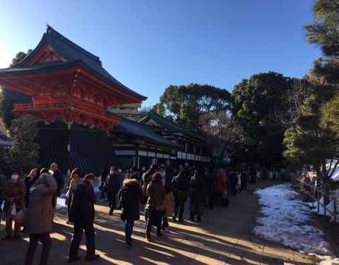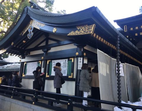 ...最熱門的時間就是ㄧ月,大家衝著它的御守來排隊,傳說可以ㄧ整年都財源滾滾,是東京十大熱門神社之一