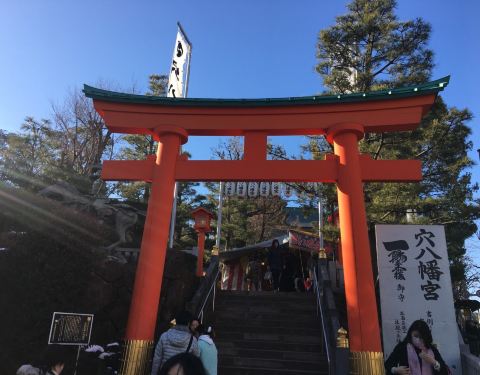 穴八幡宮位在早稻田大學附近,ㄧ年當中最熱門的時間就是ㄧ月,大家衝著它的御守來排隊,傳說可以ㄧ整年都財源滾滾,是東京十大熱門神社之一。