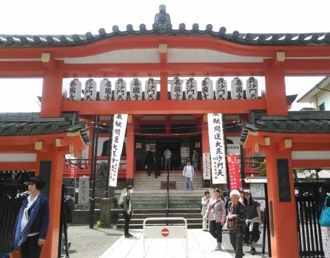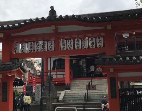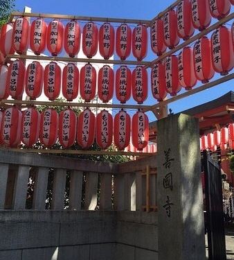 入口旁边有供奉花出售,寺庙的石狮子非常多善光寺又被称为毘沙门天,在饭田桥车站然后沿着神乐坂方向走,在一个狭窄的兵库胡同里面,参拜的人很多,桃山时代后期的建造,堂内装饰金色的光芒。入口旁边有供奉花出售,寺庙的石狮子非常多