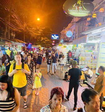 在这个地区住了两次了,因为邻近考山路所以有相当多的旅馆、餐厅、小酒馆、咖啡店,生活机能很方便,但我喜欢这里有一种悠闲的生活氛围,和捷运沿线的新市区很不同的感受,住在这里让人感觉到暹逻的人情味和朴实感。附近其实满多古蹟可以走走,下次还是想住这里,更多认识这地区的老历史人文。