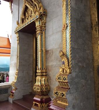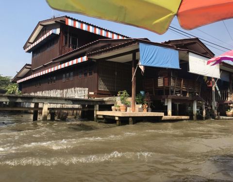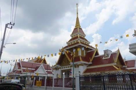 从湄南河上的一艘船上看到了瓦拉康庙,其起源可以追溯到十八世纪初。 主厅宽敞以典型的红色,绿色和橙色瓷砖屋顶为特色,有高架红色柚木屋,曾经是国王拉玛一世的住所。