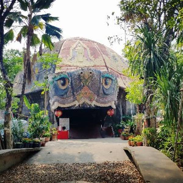 👍特色推荐: 距离曼谷60公里外,有一个佛统府,是曼谷周边游的好地方。这里有一座鬼斧神工般的寺庙成了大家向往的打卡地,那就是——Wat Samphran 蟠龙庙🐉。从神秘的巨龟嘴巴进入隧道,出来不远就能到龙庙脚...
