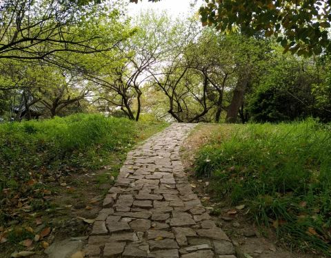 从夏力道的入口大概走一公里会看到一个休憩花园中的凉亭,这时候就离开夏利道的主干道,往小花园深处走