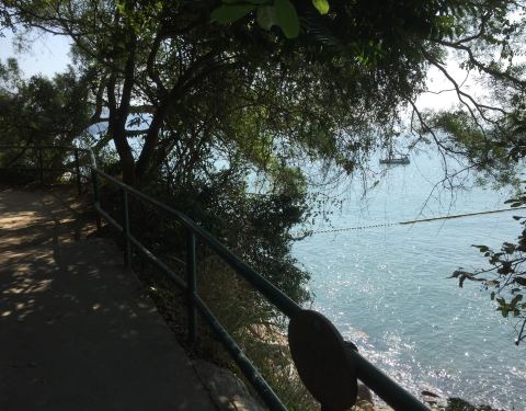 在榕树湾走了一圈没什么事干,就跟着路标走路去岛的另一边索罟湾。整条远足径很好走,两边都有树荫,非常凉快,沿途又可以欣赏海景,是消闲的好节目。