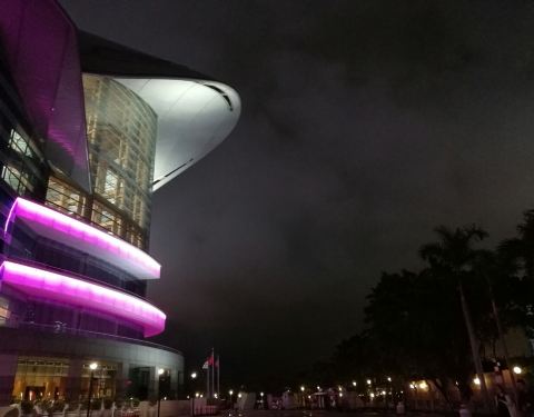 展览中心就在码头边,对岸是尖沙咀,形状蛮特别的,有点像花瓣组合在一起。晚上有亮灯,也没好看的,和周围的高楼组合成一道风景线
