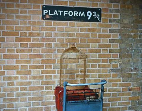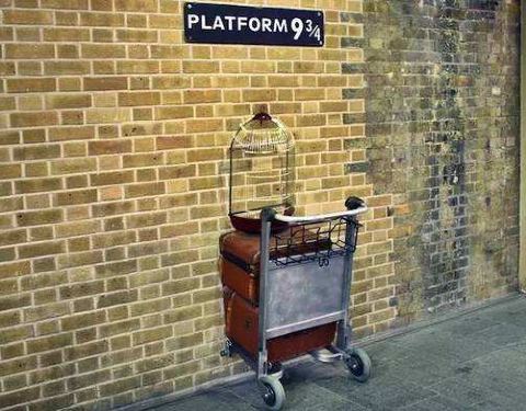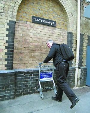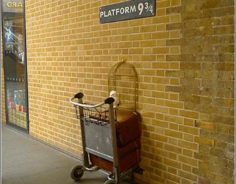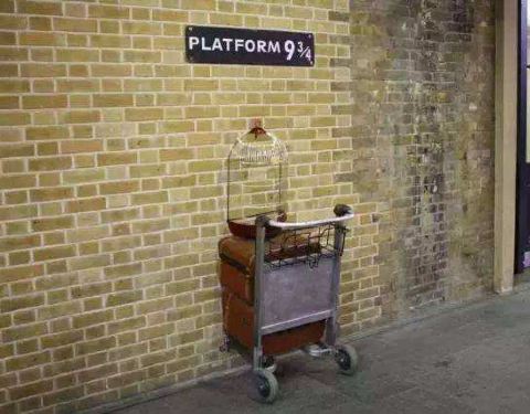 9¾站台是罗琳的系列小说《哈利·波特》中,通往霍格沃茨魔法学校的一个站台,存在于国王十字车站的第九站台和第十站台中的的三个柱子。相信熟悉《哈利·波特》的人对9¾站台都不会陌生。 在国王十字车站,现在设立了9¾站台的标示,成为书迷们必去的朝圣之地。你也想试试推车前进吗?