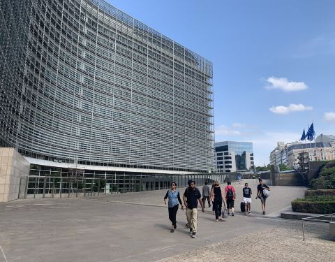 布鲁塞尔是欧洲的中心城市,欧盟总部大楼也设立在这里,总部大楼是一座大型的玻璃幕墙建筑,距离市中心不远,在轨道交通的上盖,大楼门前飘扬着一排欧盟旗帜,非常的好看,不过大楼只能外观,一般人是不能内进的...
