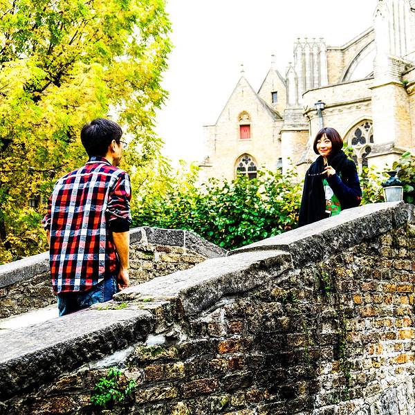 位于圣母教堂东侧的波尼法爵桥也叫一见钟情桥,在众多布鲁日的桥中它并不起眼,也很普通,但传说当你踏上这座桥后,遇见的第一位异性就会与你一见钟情,由此这座桥名声大噪,成为了布鲁日的打卡点之一。 然而,在我和李墨迹的满心期待中,只看到了一批又一批的旅行团,要不就是父亲带着孩子来旅行的那种,连个帅哥的半个影子都没见着。这次又得借大黄来演一出桥上偶遇的“韩剧”了,拍照时我总是忍不住笑场,回回NG,我不是一个好演员。