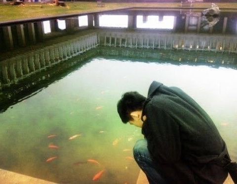 怀念在大学校园单纯快乐时光!建筑虽然有点压抑不过有个水池里面还有金鱼golden fish