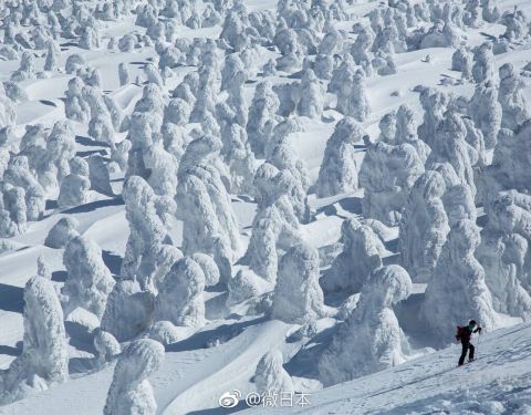 日本青森县的八甲田山每到冬季都会出现世界罕见的【雾凇】现象,因为景象独特且阵势好大,有着“雪天...