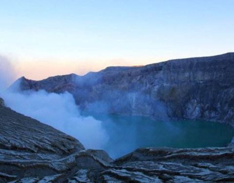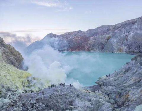 印尼语里称为“白色火山口”,火山湖会随着硫磺浓度不同而产生颜色变化。