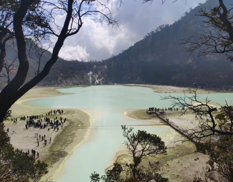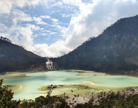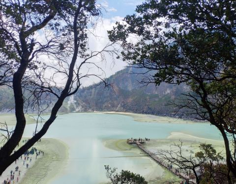 卡瓦普定火山湖 , 位在Jl. Raya Soreang, Ciwidey小镇的深山中, 离万隆市区约2小时车程. putih在印尼语为白色,又称为白色之湖, 湖水的颜色会受硫磺与天气影响,属于天然的火山湖,在海拔2400多公尺, 整个湖水,奶白带点蓝,一旁的土壤也是白色,简直扩大湖面的效果。在卡瓦普定火山湖能让您如此尽情享受硫磺味侵袭, 亲眼领略一下白色火山湖迷人的风光。