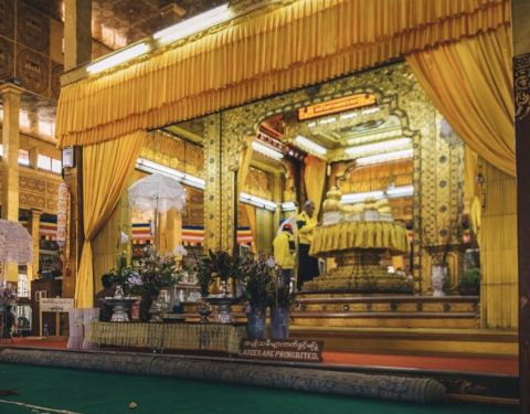 但是这里已经是当地最大的一个寺庙了,内部的装置还不错,贴了很多金箔的东西,也是延续了当地的一些传统的
