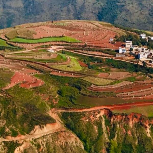 这是比较推荐去看看的一个观景点!在这里可以看到典型的多彩的农作物与红土地组成的大美风光