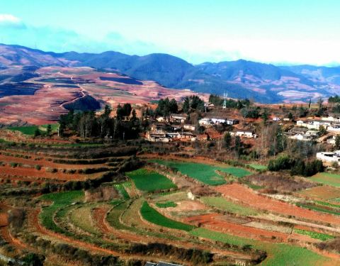锦绣园是东川红土地的观景点之一,距离花石头村比较近。在这里可以看到典型的多彩的农作物与红土地组成的大美风光。另外,距离花石头村比较近,也能欣赏村落与红土地相映成趣的那一面,非常不错。这是比较推荐去看看的一个观景点!