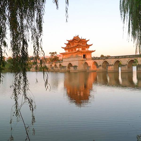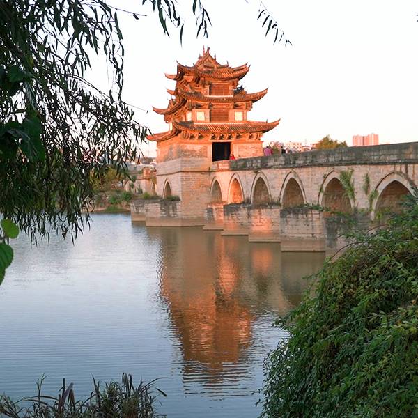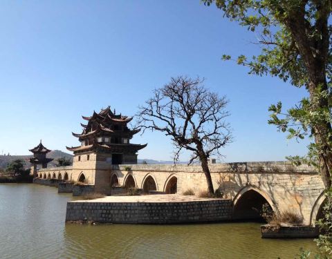 浑然一体,这座桥也叫双龙桥,被认为是云南省规模最大、艺术价值最高的一座多孔连拱桥,已列入中国造桥史册