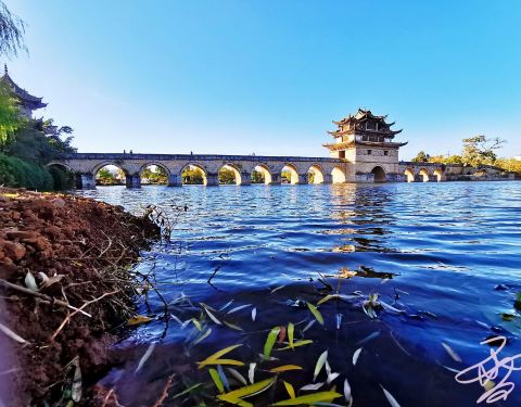 (云南建水•双龙桥)双龙桥在建水市郊,开车过去差不多要一个小时左右。双龙桥是一座17孔大石拱桥,已经很有历史了。我们到的时候是下午,整个桥上一个人都没有,我们太开心了,玩了很久才走。