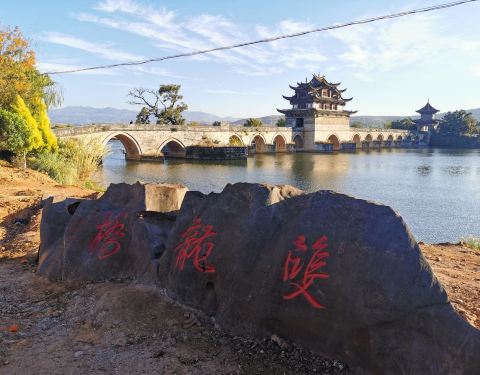 在这桥上,谁遇见了谁,谁又成了谁的风景?我当然是毫不犹豫上车啦!好吧,我白等了这么久吃饱继续出发,我按照导航来到了一个叫红运的公交站等建水4路公交车去双龙桥,没想到等了45分钟都没看见有4路公交车的身影出现。然后我发现很多统一款式的黄色小面包车一直在经过,我就上前问了一下去双龙桥多少...吃饱继续出发,我按照导航来到了一个叫红运的公交站等建水4路公交车去双龙桥,没想到等了45分钟都没看见有4路公交车的身影出现。然后我发现很多统一款式的黄色小面包车一直在经过,我就上前问了一下去双龙桥多少钱,司机说:三块!我天!我当然是毫不犹豫上车啦!后来才知道,这些黄色的小面包车是他们这边比较正规的交通工具,专门往黄龙寺方向的,相当于是当地人的另类公交车!好吧,我白等了这么久!真冤!....来到双龙桥,这座古老的十七孔桥,就安安静静的座落着水面上,千百年来,行人来来往往,留下已经行走的很光滑的青石桥道,也留下了许许多多的故事。在这桥上,谁遇见了谁,谁又成了谁的风景?..... 展开