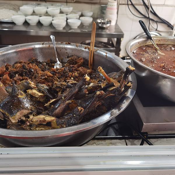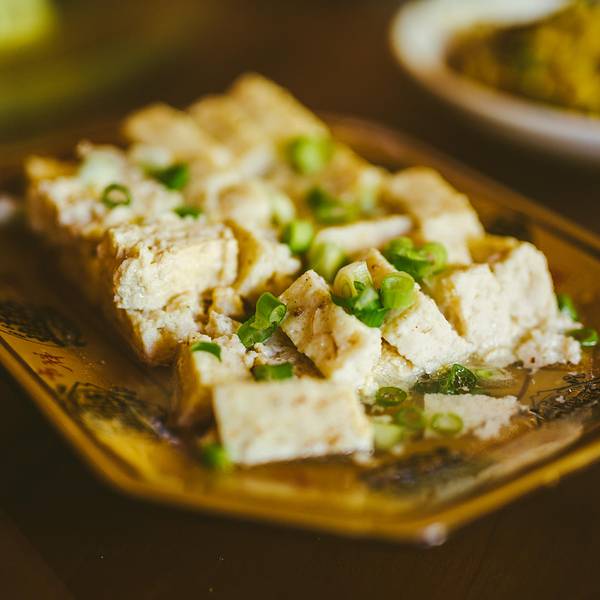 当地的店家,总会在上菜前,先摆一盘袖珍小瓜子,再端来一大桶米饭,霸气十足。我印象最深的,就是店家自制的这道豆腐拼,鸡肉鸡蛋炸豆腐,口感也太炸裂了,加上酱料,整盘菜的灵魂啊!还没吃完,我就想再来一盘了!还有道菜叫豆浆白菜,也从没吃过,是用豆浆煮白菜,不加一滴水。这里的马店都有豆腐四吃:豆浆、豆花、豆渣、豆腐块。