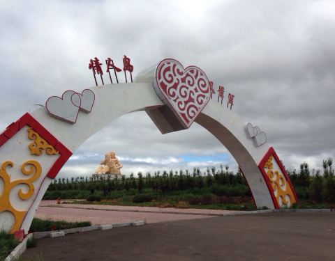 没有门票的免费景点,在满洲里市区的西南方向,去机场高速公路半道上沿指示行驶就可以,远远就能看到巨大的主雕塑——相拥的情侣。主要是成片的草原,还有几个猛犸象雕塑、金婚银婚钻石婚石雕、欧式建筑,鹊桥。不是主要景点,逗留时间短的游客一般不专门去。飞机上俯瞰、平地远眺即可。不远处即是俄罗斯境内。
