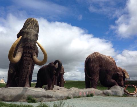 在查干湖附近的雕塑群,有一对情侣相拥、猛犸象群、金婚、银婚、钻石婚等纪念碑、鹊桥…今年风调雨顺,水草丰美,是看草、赏芦苇休闲好去处