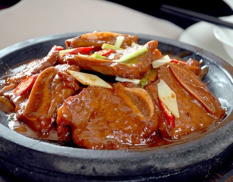 泡完温泉又去他们的餐厅吃了饭,冷水鱼的味道不错,我最喜欢吃牛仔骨了,味道不错
