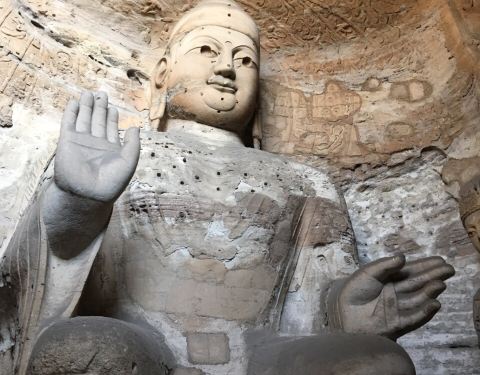 云岗石窟的地3窟,有点印象模糊了,因为离我去云岗石窟,已经快3年了,但是回想起来,仍旧是印象深...云岗石窟的地3窟,有点印象模糊了,因为离我去云岗石窟,已经快3年了,但是回想起来,仍旧是印象深刻,灰色的佛像,有点斑驳了。