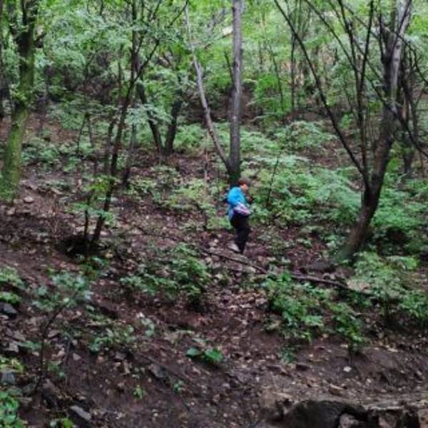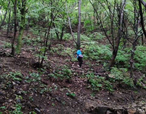 ...,翻过天生桥,穿过一杂树林,里面有很多蘑菇野花,空气好,湿润,在涞源两天感觉皮肤水水的,很开心