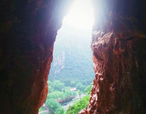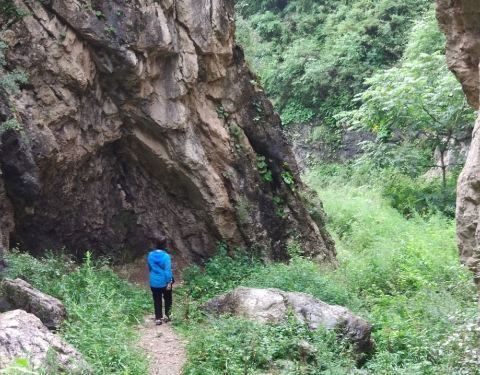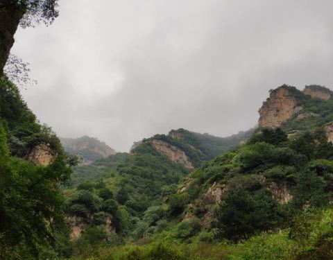 很自然的景观,人少,两边山崖壁立,中间有一深谷,登梯寺瀑布水流湍急,翻过天生桥,穿过一杂树林,里面有很多蘑菇野花,空气好,湿润,在涞源两天感觉皮肤水水的,很开心。