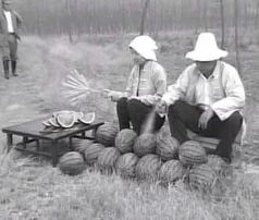 《白洋淀里小张嘎》北洋淀有小张嘎,调皮捣蛋顽皮娃。泅水攀树能揭瓦,天不怕来地不怕。小小年纪志气大,手持梭标守哨卡。侨装打拌卖西瓜,木枪可把翻译抓。侦察敌情送情报,打水也把汉奸抓。炮楼底层点烈火,烧得鬼子象烤鸭。