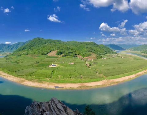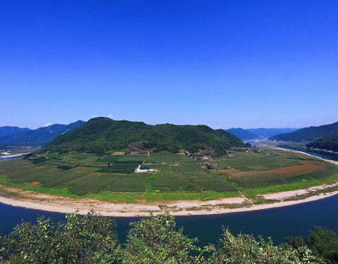 【景色】浑江大转弯是浑江汇入鸭绿江前最后也是最大的一个拐弯处,被称为“辽东第一湾”【景色】浑江大转弯是浑江汇入鸭绿江前最后也是最大的一个拐弯处,被称为“辽东第一湾”。风光秀美、险奇,有如九曲黄河之壮观。路边有观景台,可以俯瞰全景,非常壮观。浑江水在这里几乎呈一个360度的大转弯,很...【景色】浑江大转弯是浑江汇入鸭绿江前最后也是最大的一个拐弯处,被称为“辽东第一湾”。风光秀美、险奇,有如九曲黄河之壮观。路边有观景台,可以俯瞰全景,非常壮观。浑江水在这里几乎呈一个360度的大转弯,很是壮观,江水环绕着浑江村,村民们就生活在这片青山绿水中,蓝天白云近在眼前。 【趣味】水没田也是这儿的一大景观,每年雨水风茂的时候,江水会没过岸边的农田,天旱是农田又浮出水面,这样经过江水的滋润,田地更加肥沃,长出的庄稼也更加丰美,让人忍不住感慨自然的神奇。 展开
