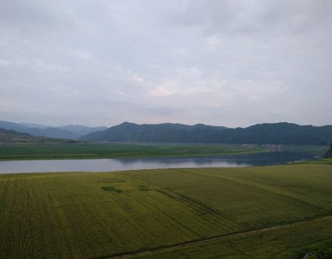 今日从集安出发途径此地下车休息,没想到一个最美丽的景致~浑江大转弯,据说这里是浑江在流入鸭绿江之前最后的一个转弯~360度。 意外收获,乐不可支。
