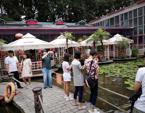 不得不说,城区边缘的地方能有这么一家可以观赏的餐厅有多难得,这是它的特色,相对于越来越类似的餐饮环境,这里别具一格,同样是吃饭,能多出一点氛围绝对要亮点一点。宴请聚会,真是好地方,有民俗的品味,主要是有热闹的氛围,挺有面子的,感觉像用心在招待他人。价格有点小贵,不适合平时吃饭,挺适合办事的。包房要提前预定,不然就得排队。附上,园内水池的大大大金鱼~还有翅膀呢