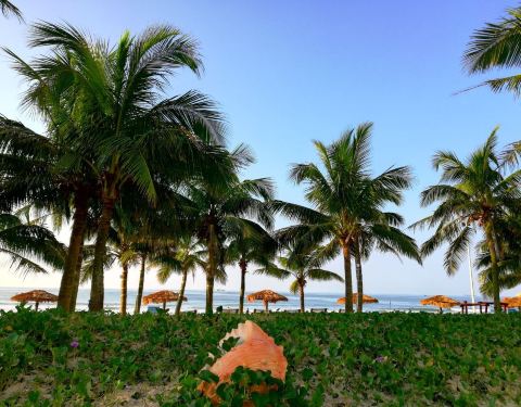 大角湾是要收取门票,所以我们就没去了。沙滩边上有很多椰子树,哈哈早餐后我们就开车去北洛湾,这个海滩是免费的,不用收费