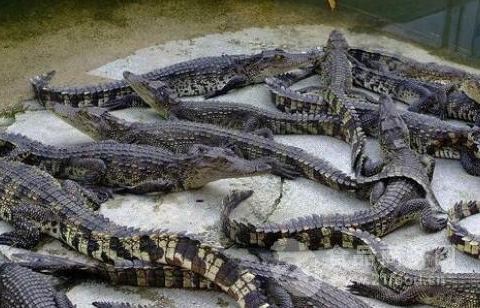 ...方,这里的鳄鱼种类比较丰富,都是以饲养为目的的,有好多个不同的规模鳄鱼饲养基地,大大小小几百头