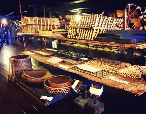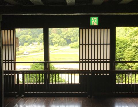 在佛堂旁边还有一个小的房间,是一件展示室,里面摆放了一些大概是从前主人收集的东西。和田 家的屋子被分成了三层。在一层和二层之间还有一个小小的夹层房间,不过没有占用整个一层的面积,所以就不纳入在内。除了一层是是生活区以外,二层全部都是江户时代起 和田 家的民生用具。三层并没有对外开放,不过把手机从门缝里探进去拍的照片来看,基本也是和二层类似的场景。整个一层都铺满了榻榻米,走在上面软软的感觉很舒服。通往楼上的与其说是楼梯,可能更接近于梯子,窄而陡,两个人同时错身是不可能的,稍有不小心就会摔倒,手脚并用反而更安全一些,看到一楼卖门票的婆婆,倒是担心她一把岁数来二楼一定要小心。二楼摆得都是以前养蚕和耕种所用的工具。合掌屋充分利用了屋顶下面的空间,地板中间镂空的设计可以使得一层地炉的暖气来调整二楼的温度,使得整个 和田 家内的温度均匀,即便在严寒的冬天,二楼也可以保持温暖以便养蚕。尽头的大窗户也为室内提供了良好的采光,在晴天拉开窗户,阳光照进屋子的时候想必是暖洋洋的。这也是养蚕所必备的因素之一。