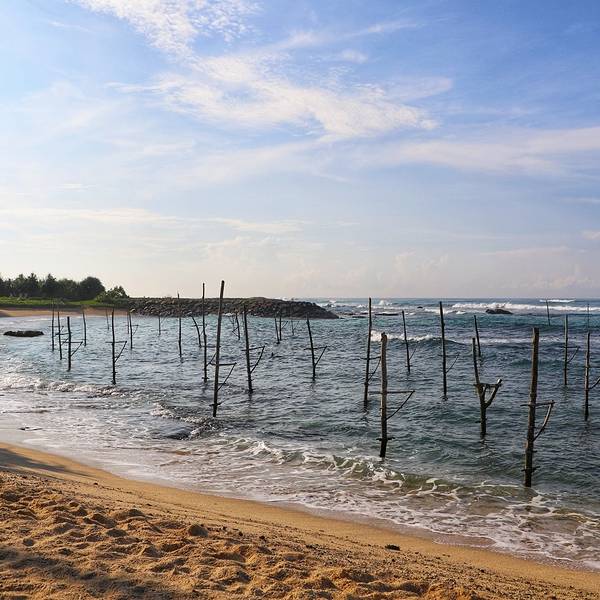 4. 乌纳瓦图纳 海滩,人多热闹,沙滩尚可。出行前对 斯里兰卡 的海并没有期待,所以看到 坦加勒海滩 那一刻,着实惊艳!海水湛蓝,分层明显,海浪较大。也许因为沙滩并不细腻,颗粒感很强,一阵海浪退去后惊现一片莹白泡沫!日头毒辣,我几次经过插有 高跷渔夫 木桩的海域,别说渔夫,连游客都没有。此前做攻略时得知,虽然现在的 高跷渔夫 早已沦为商业表演,但清晨7点之前还有可能见到真正的渔夫钓鱼。所以我就没再停留,打算明天一早再来碰碰运气。 展开