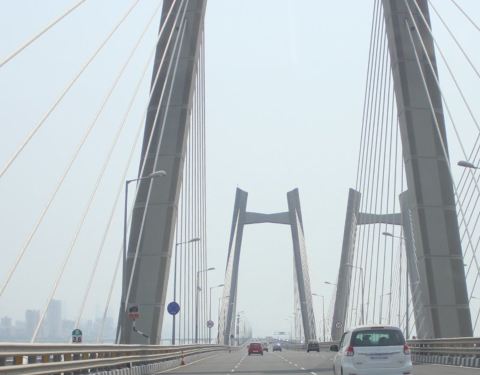 大桥一共有八个车道连接了南北孟买,是重要的交通枢纽。