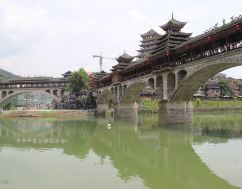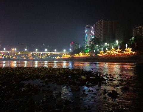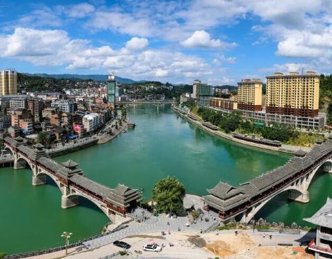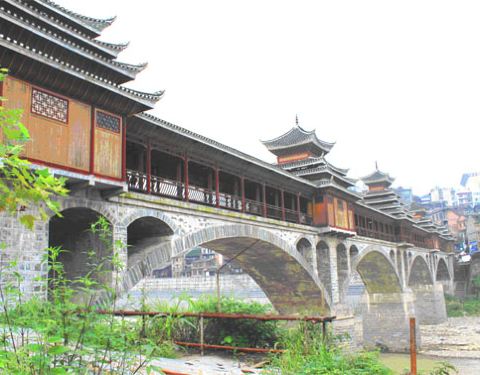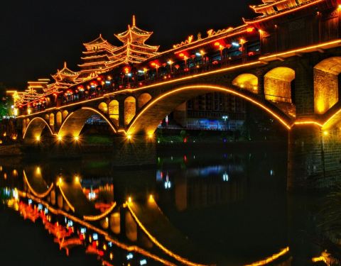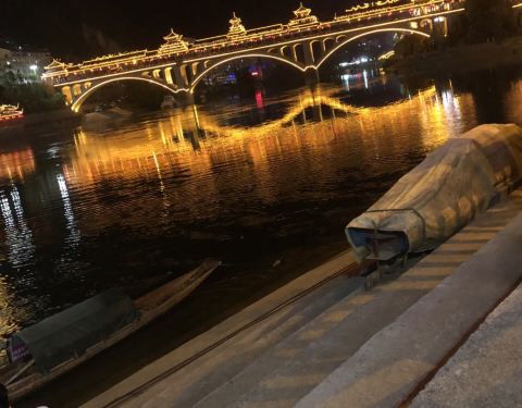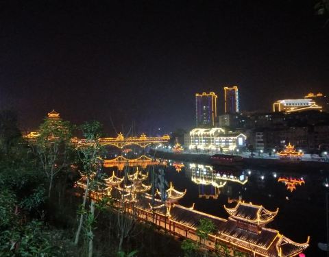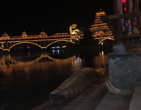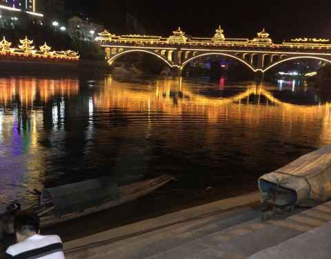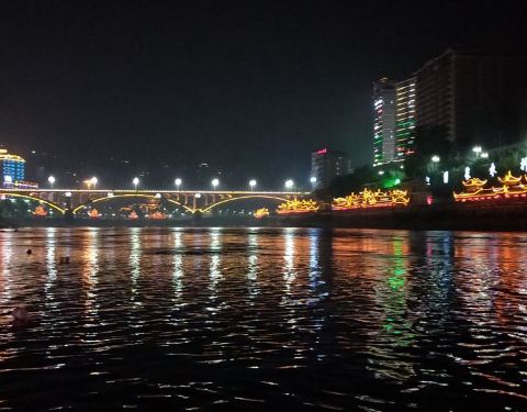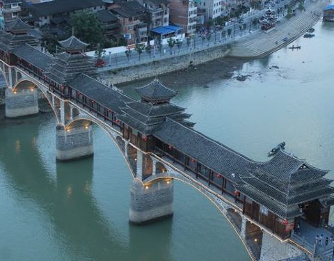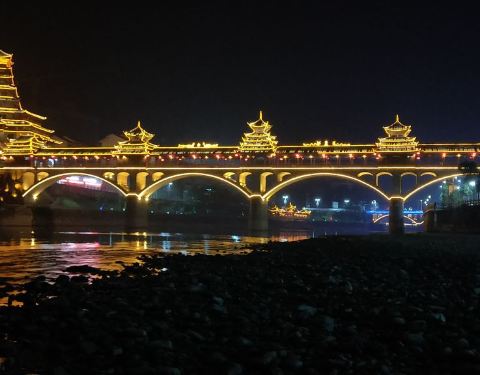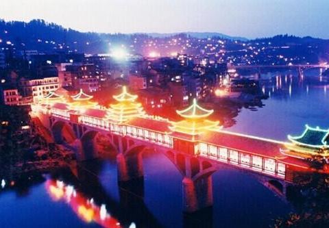 晚上夜景很漂亮噢。夏天风雨桥特别的凉快。很多男女老少都喜欢在上边乘凉。还有载歌载舞的。位于两江交汇处
