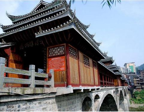 很美很好看,晚上的时候很凉快,每天都会有很多人到上面坐,锦屏风雨桥两个连在一起,很有名族特色,...