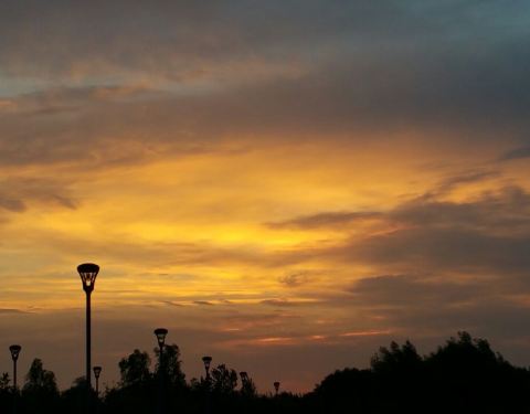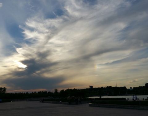 夏日傍晚,晚霞超级漂亮,人们也喜欢来这里健身娱乐。