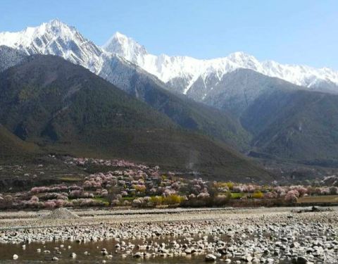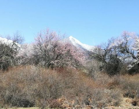 走进如纳村,仿佛来到世外桃源。村子里静悄悄,偶而几声藏犬吠叫,更显村庄的宁静。村庄景致优美,蓝天白云下的雪山升起层层的云雾,道路旁弯弯曲曲篱笆围着畦畦的青稞,在绿油油青稞衬映下,千姿百态的桃花绽放...