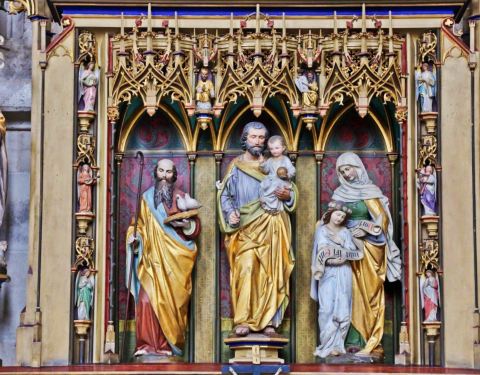圣乔治大教堂(Muster St.Georg),是德国南部最纯粹的后哥特时期教堂之一,外表可能有些简陋,内部装饰却极其华美。这个泛着灰色的古老建筑夹在一片色彩斑斓的彩色房屋之间,有一种历史的厚重感。
