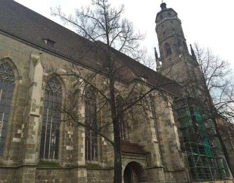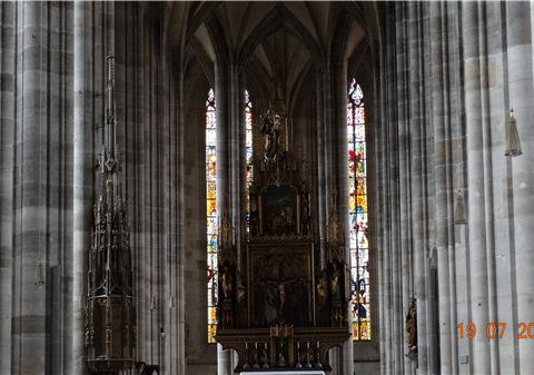 圣乔治大教堂,是德国南部最纯粹的后哥特时期教堂之一,虽然从外面看很简陋,但里面还是比较奢华的,教堂的塔楼是小镇最高的地方,可以登上去俯瞰小镇