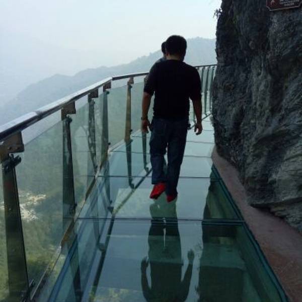 就冲玻璃栈道去的,在取票处扫码花一元走玻璃栈道,有